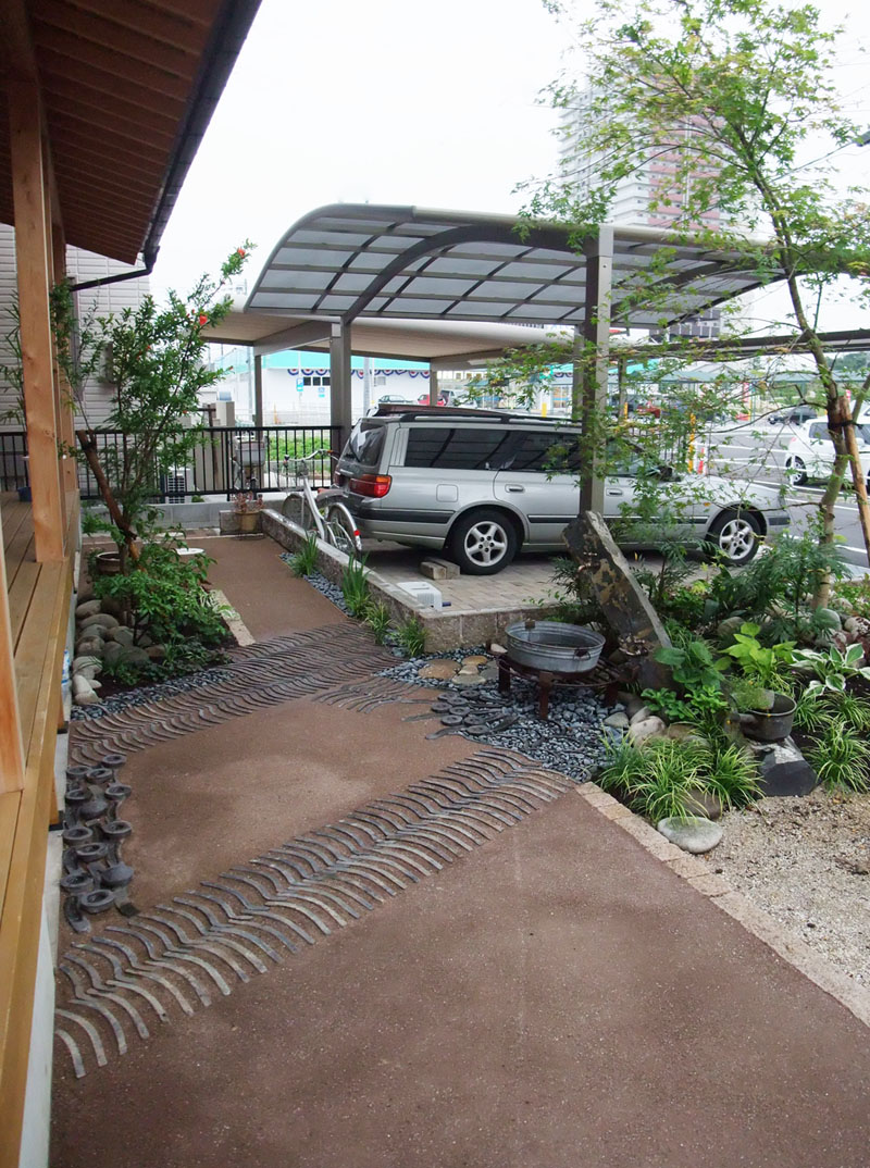 日進市 T邸 純和風の建物のT邸。 日当たりのいい広い縁側で家族みんなでのーんびり。 そんな景色の似合うお庭がイメージです。 古瓦や黒玉石で和の雰囲気を漂わせながらも、 植物や骨董で純和風とは一味ちがう独特の雰囲気に。 テラスとアプローチに敷いた古瓦。 譲り受けた廃棄される運命だった古瓦が生まれ変わり、 T邸のお庭のアクセントになっています。 戻る