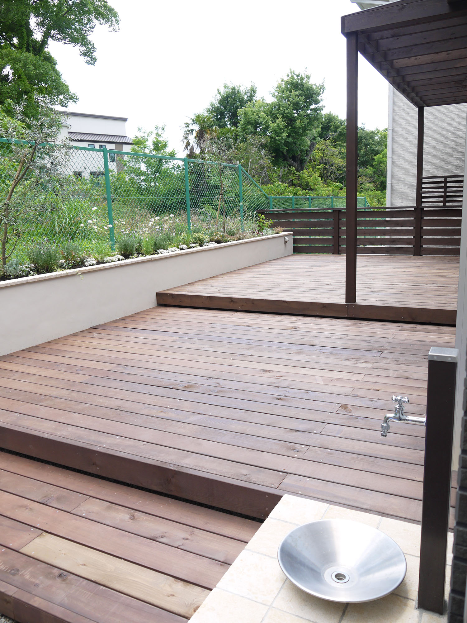 まぶしくてカーテンをしたままになっていたリビングの光を調整できるように、パーゴラを設けて、
