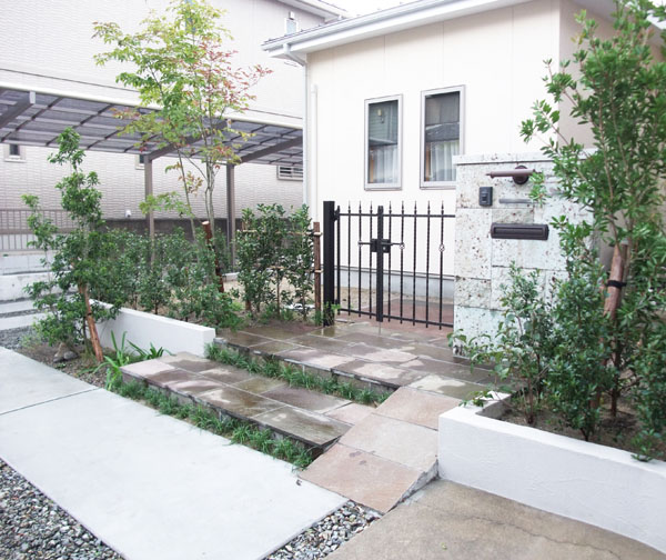 庭でも離れと母屋をつなぎます。